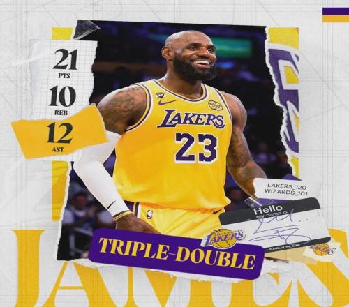 比如前两天湖人击败奇才,在东契奇休战的情况下,詹姆斯打出21分10篮板12助攻的史上最好三双。