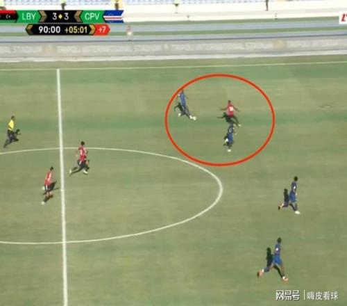 然而,佛得角无法提前晋级,是相当可惜的。下半场补时第95分钟,佛得角球员发起反击,并且形成单刀之势,最终将皮球送入网窝。不过,裁判认为传球时处于越位状态,进球无效。从慢镜头回放来看,虽然佛得角有球员在越位位置,但是上图红圈内接球的球员,并没有越位,是一次十分明显的误判。没有VAR协助之下,佛得角只能无奈收获一场平局,万一失去世界杯资格,这个判罚会变得相当滑稽可笑。