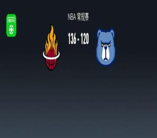 第四节热火阿德巴约拿下7分,灰熊GG-杰克逊拿下8分,最终热火136-120战胜灰熊