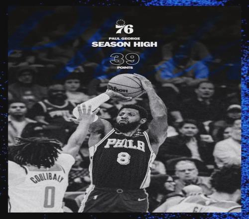 今日76人153-131大胜奇才,保罗-乔治22投15中,轰下39分5篮板6助攻3抢断。