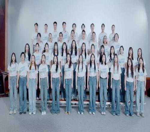 广州星弧合唱团身着助威服,用整齐嘹亮的合唱点燃全民观赛热情。